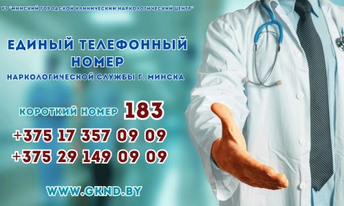 Единый телефонный номер наркологической службы г. Минска 183; +37517 357-09-09; +37529 149-09-09 (круглосуточно)